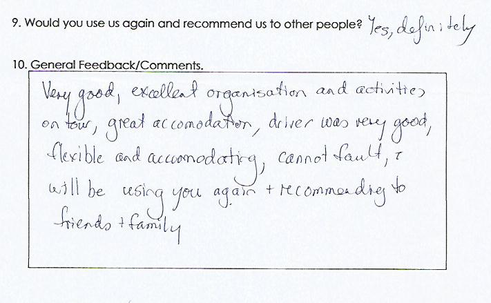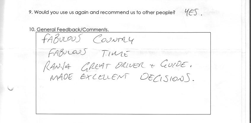 Fabulous country, fabulous time. great driver & guide, made excellent decisions. Regards, Stevan Callaghan 04/03/2017