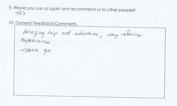Fabulous country, fabulous time. great driver & guide, made excellent decisions. Regards, Stevan Callaghan 04/03/2017